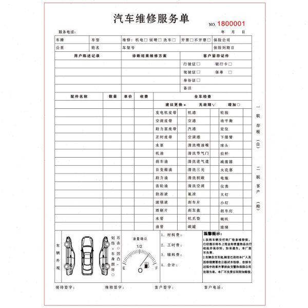 汽车修理厂汽修接待检查施工报价单据车辆维修服务接车单二联定做 - tb263986445