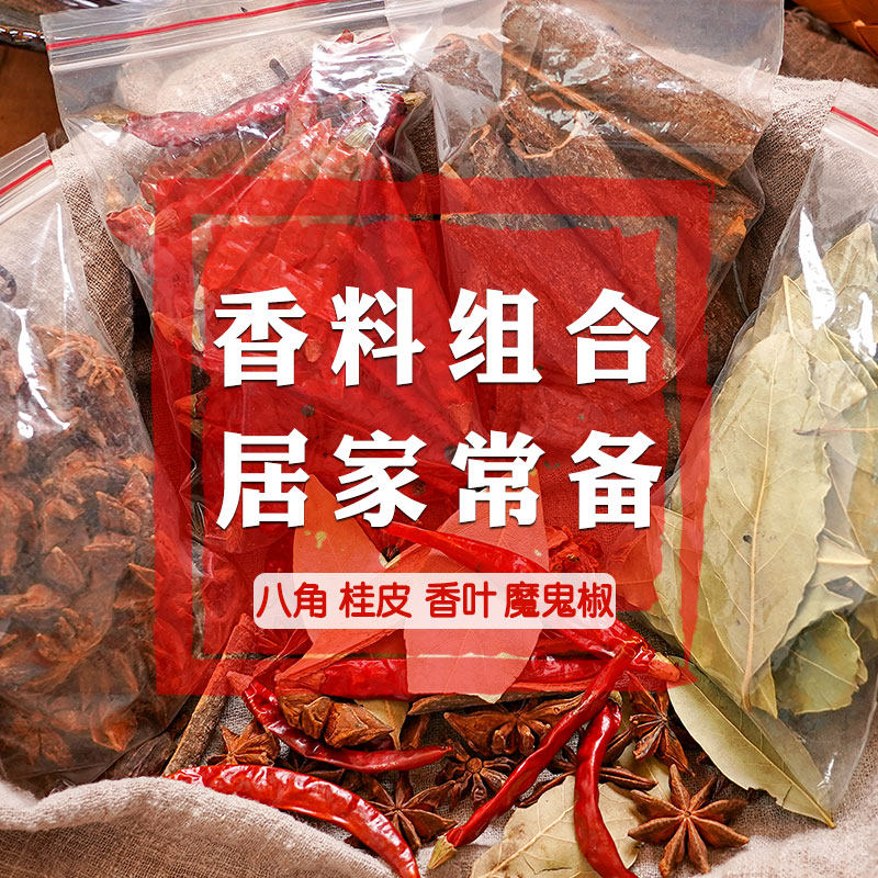 您的位置:恰鹿券集市  >  美食  >  香料调料大全自选按方配料组合八角桂皮香叶茴香草果花椒辣椒卤料