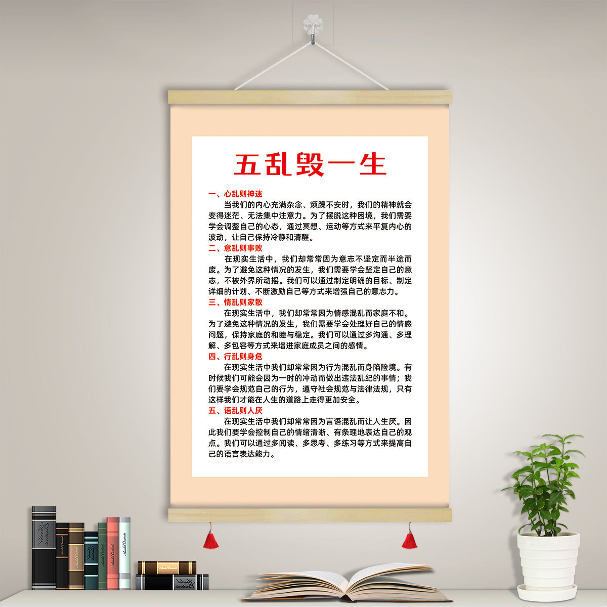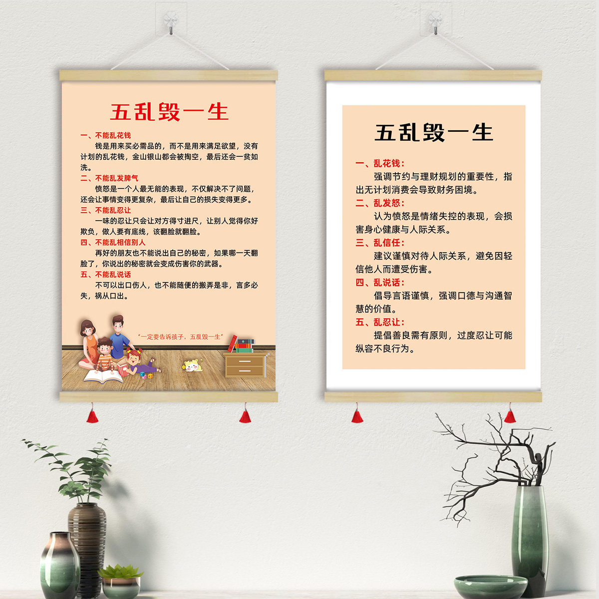 五乱毁一生卷轴挂画书房客厅警示教育孩子励志装饰画墙字画GCM13 - 标语王旗舰店