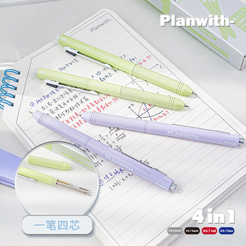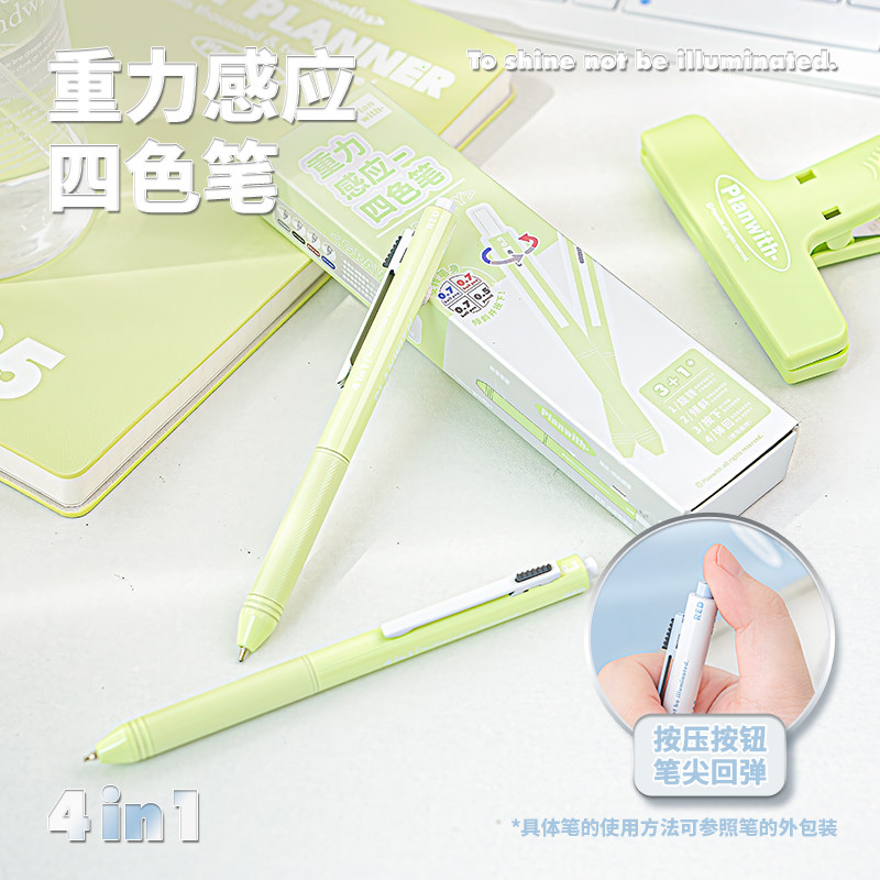 Planwith重力感应笔按动中性笔四合一黑科技圆珠笔高颜值ins风签字笔黑笔速干顺滑蓝红铅笔学生用刷题笔文具 - planwith旗舰店