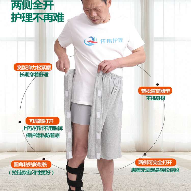 仟伟骨折大短裤手术住院病人两侧开边五分裤易穿脱卧床老人护理裤 - 盛美服饰sunway
