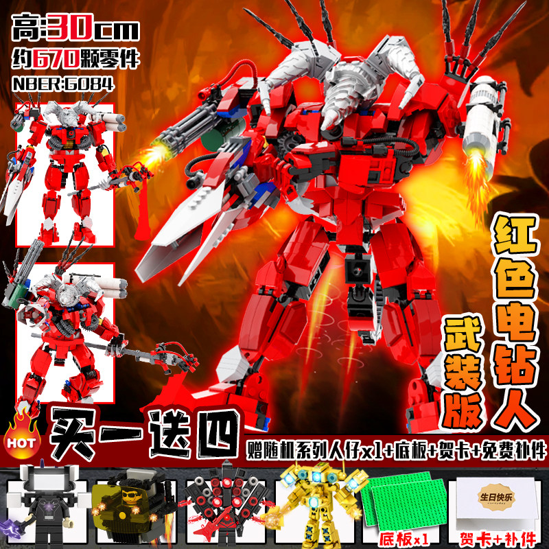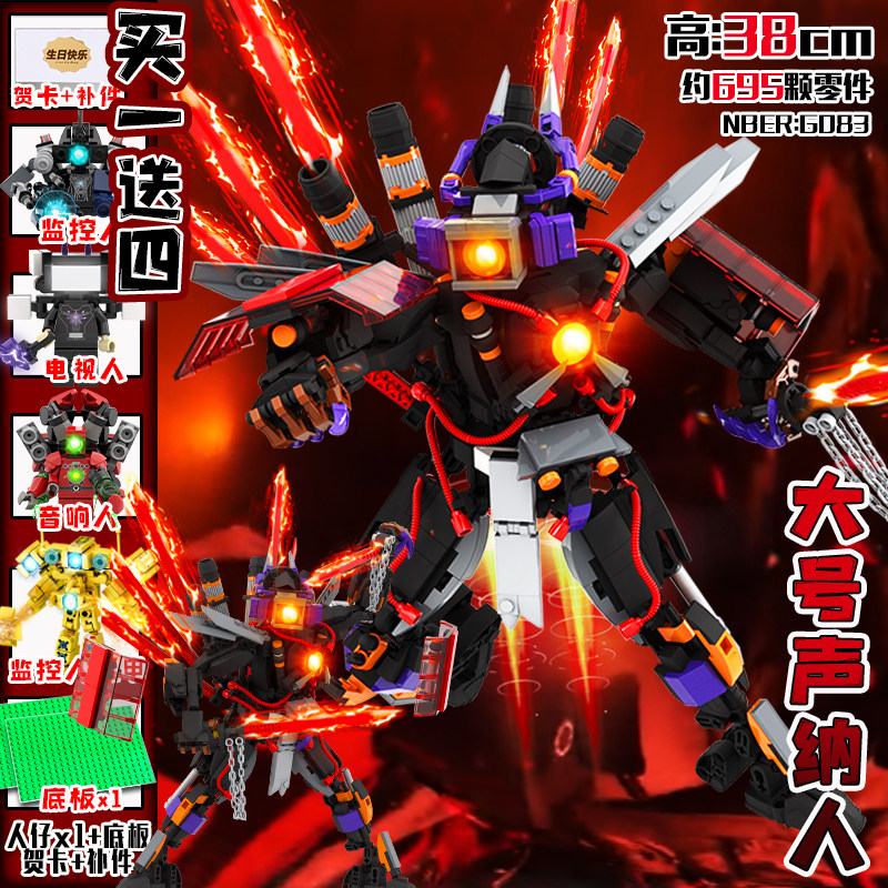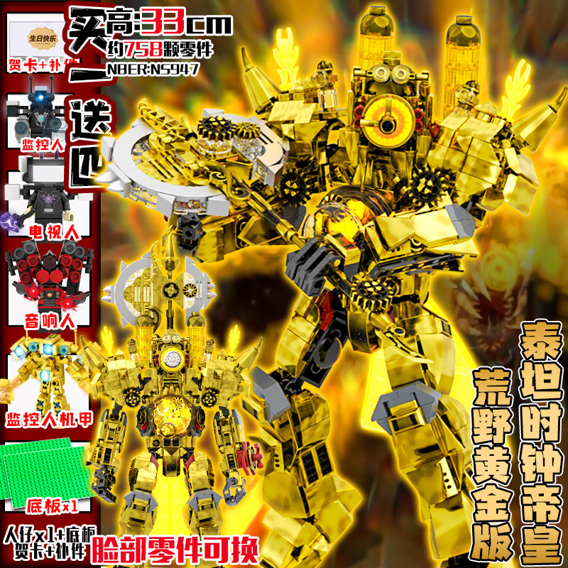 荒野时钟帝皇监控人积木马桶人拼装玩具儿童益智电视人模型摆件男
