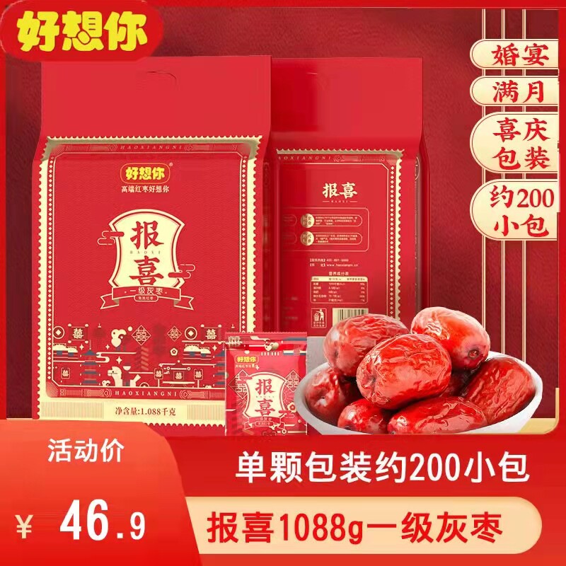 好想你喜糖喜枣报喜枣阿胶枣1088克红枣婚庆糖包结婚零食新疆灰枣 - 友美食品专营店