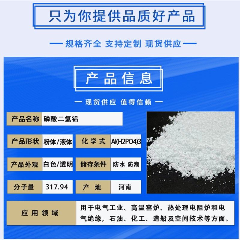您的位置:恰鹿券集市  >  居家  >  试验级高纯透明耐高温粘合剂电气绝缘混凝土固化剂专用磷酸二氢铝