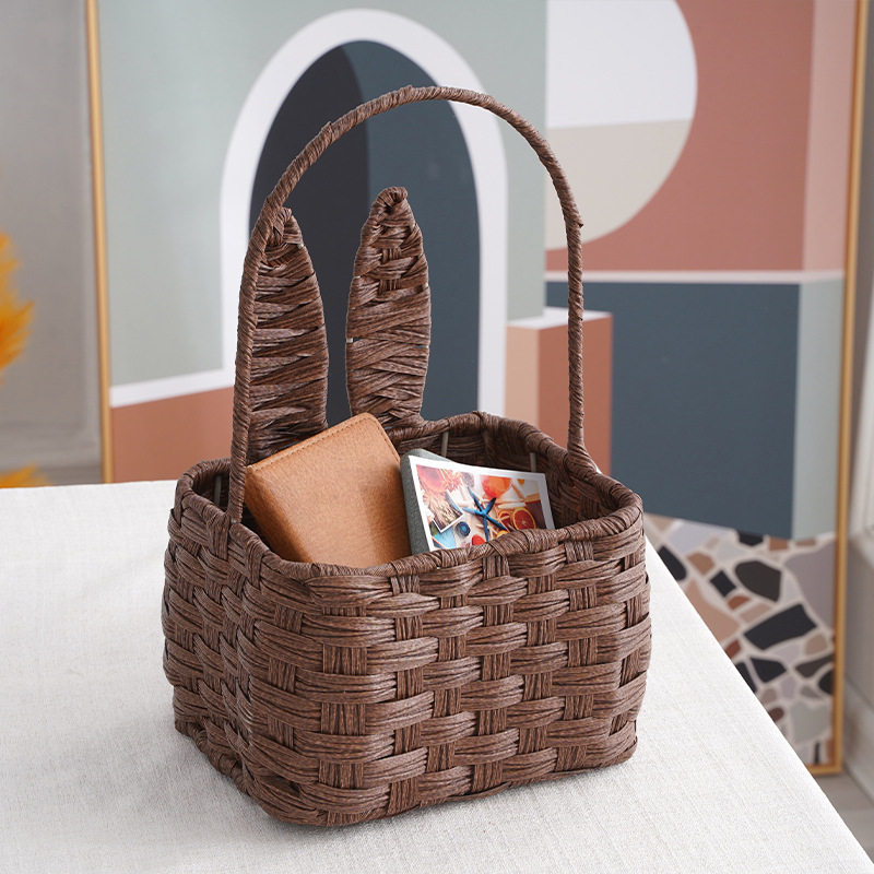 复活节彩蛋篮子装饰仿藤编织收纳筐手提式整理收纳篮水果蔬菜野餐 - 吉美玩具礼品馆