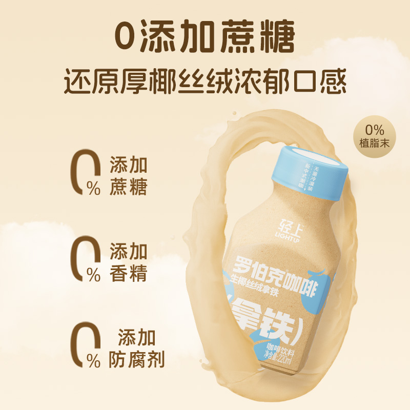 轻上x罗伯克咖啡生椰丝绒拿铁0添加蔗糖厚椰乳+冷萃咖啡搭配椰泰 - 椰泰旗舰店