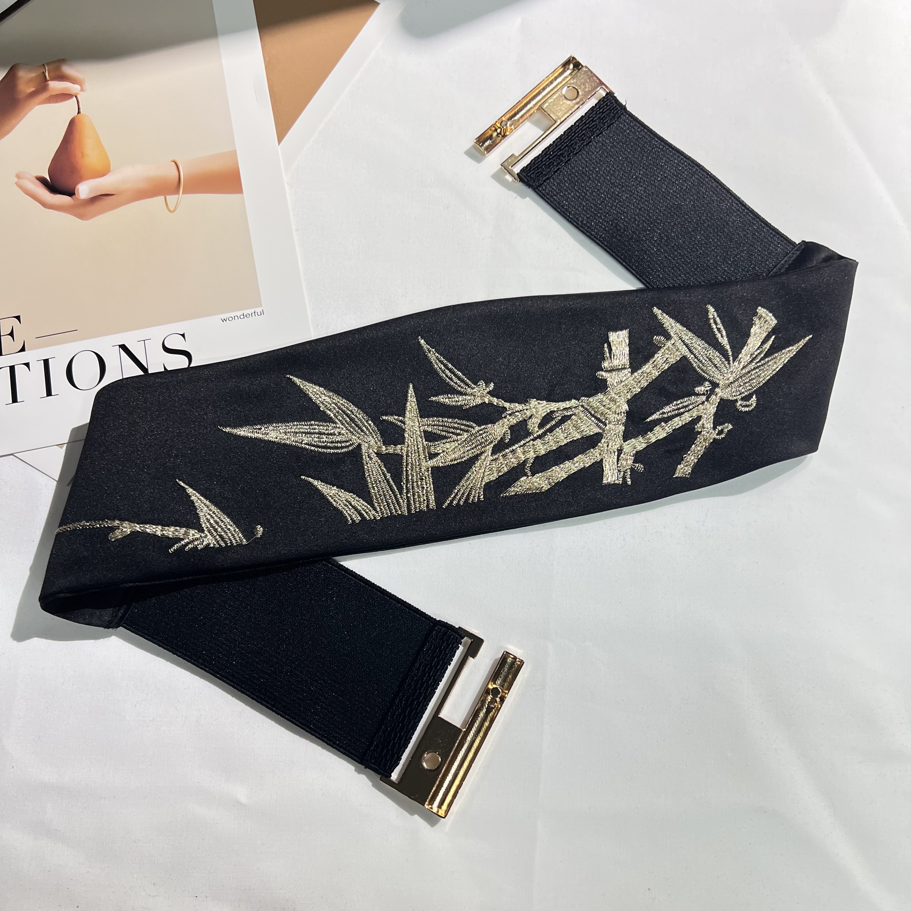 新升级富贵竹刺绣腰封束腰配裙子汉服新中式国风弹力腰带复古装饰 - 孤鲸向海 原创国雅配饰