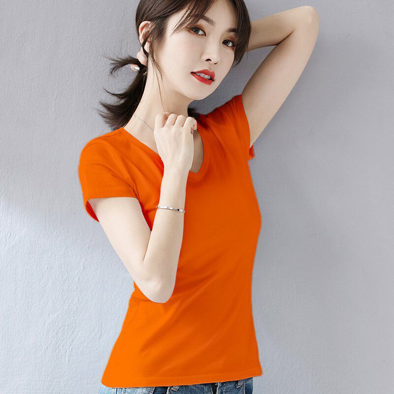 纯棉白色圆领修身短袖t恤女夏季2026新款女装内搭打底衫显瘦上衣 - 晨果果的桔子店