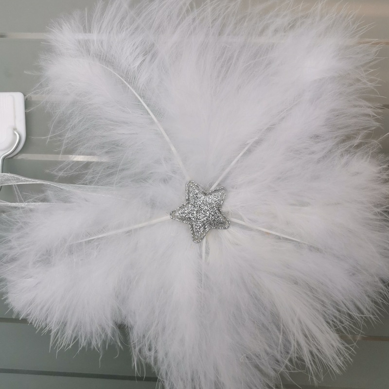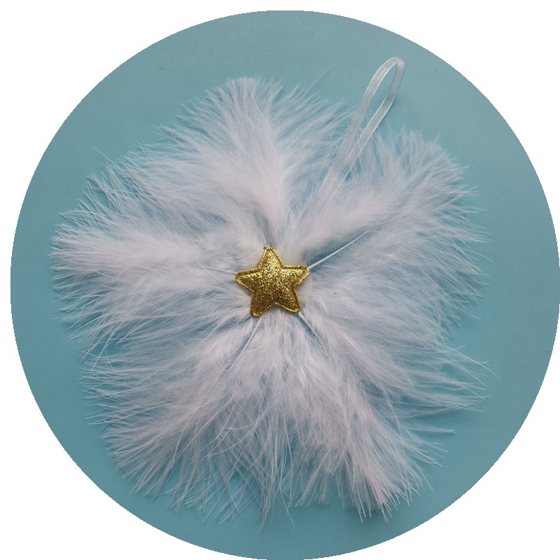 Gold silver pentagram white feather cloth sticker Christmas