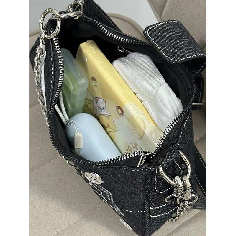 千禧辣妹y2k同款星星牛仔腋下布包复古拼接时尚大容量链条单肩包