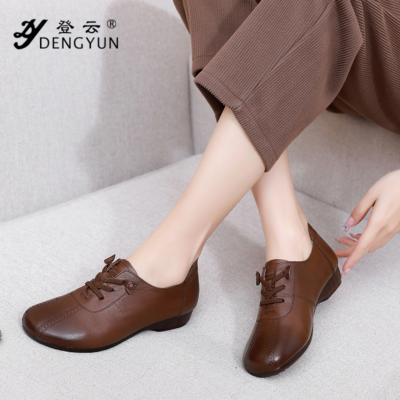 上海登云真皮女鞋休闲低跟深口妈妈鞋春秋软皮软底乐福鞋圆头单鞋 - 老上海站 企业店