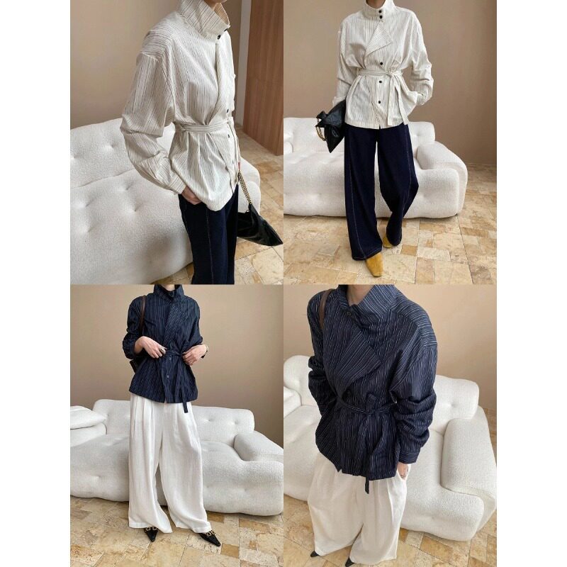 司南 小众设计师款 高智感两穿领收腰设计感条纹通勤衬衫 SN7937 - 序言