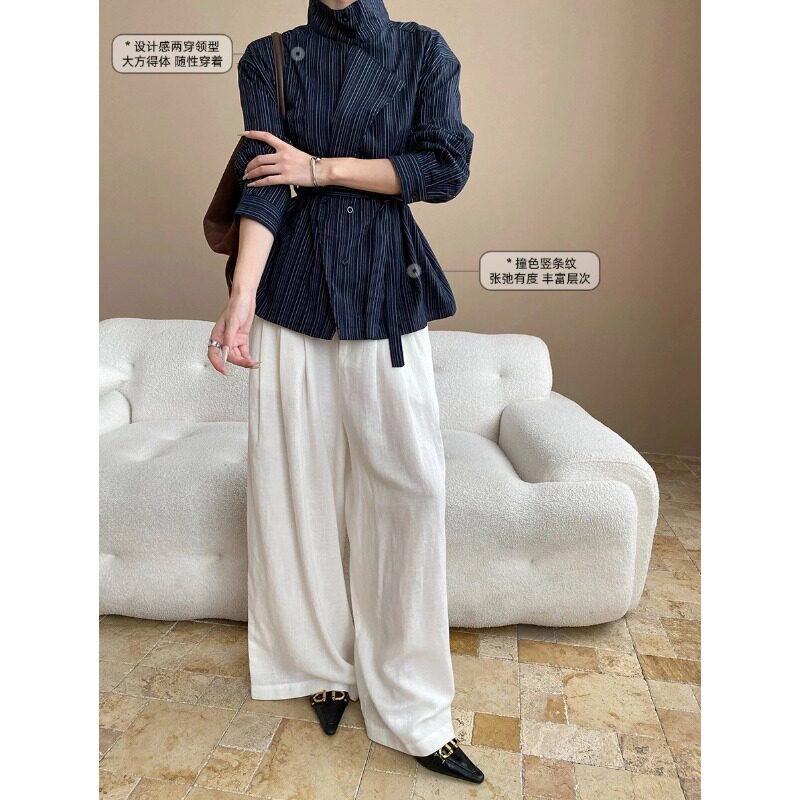 司南 小众设计师款 高智感两穿领收腰设计感条纹通勤衬衫 SN7937