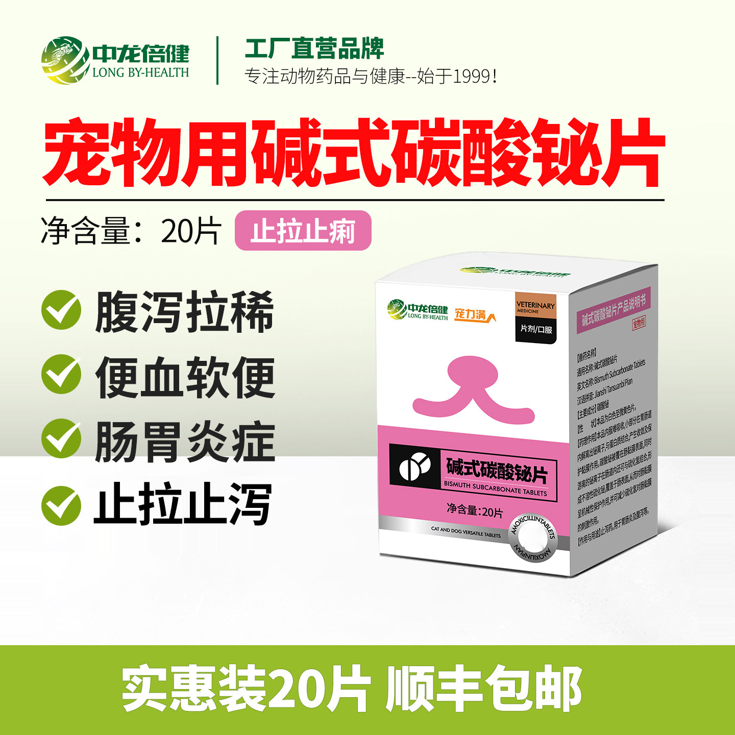 狗狗肠胃炎症药拉稀腹泻肠胃调理治疗宠物犬软便血止泻碱式碳酸铋 - 中龙神力宠物用品专营店