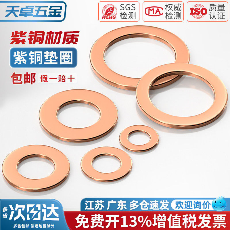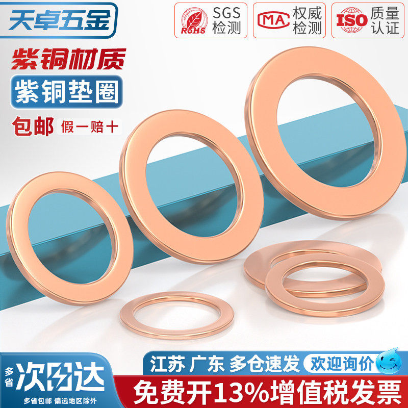 国标纯紫铜全铜垫片船用表用密封圈铜圆形螺丝金属平垫圈M3-M60mm - 天卓五金官方旗舰店