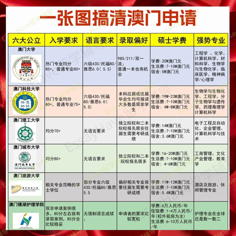 澳门大学理工科技旅游镜湖护理城市硕士博士研究生留学生申请咨询 - EssayHave留学辅导