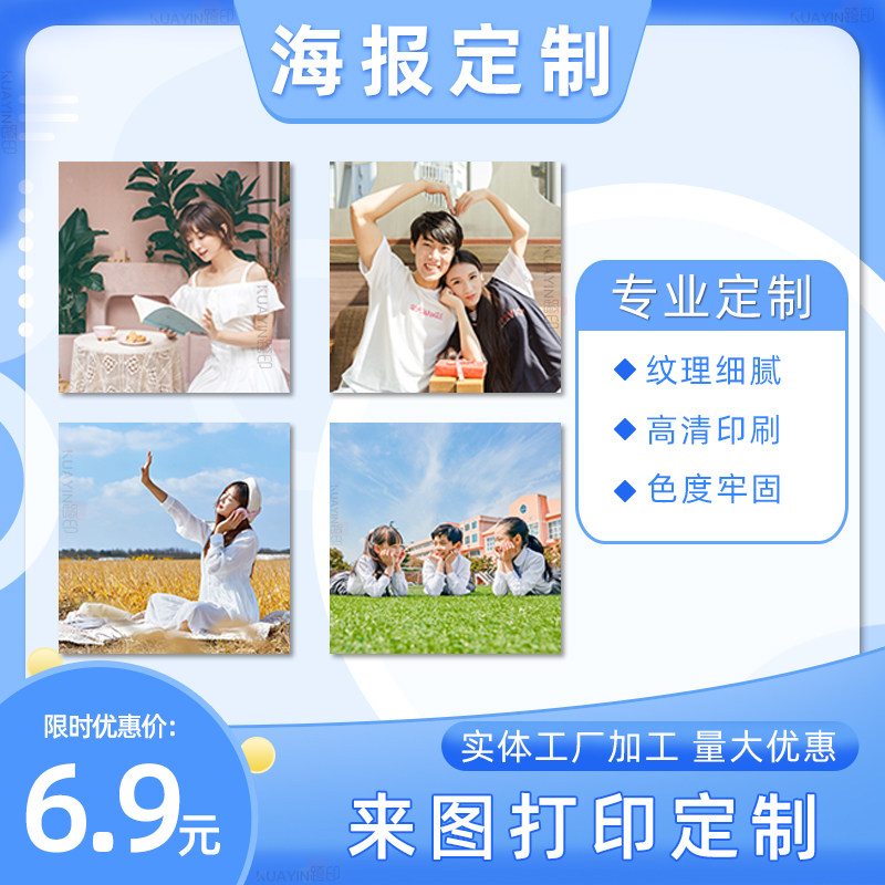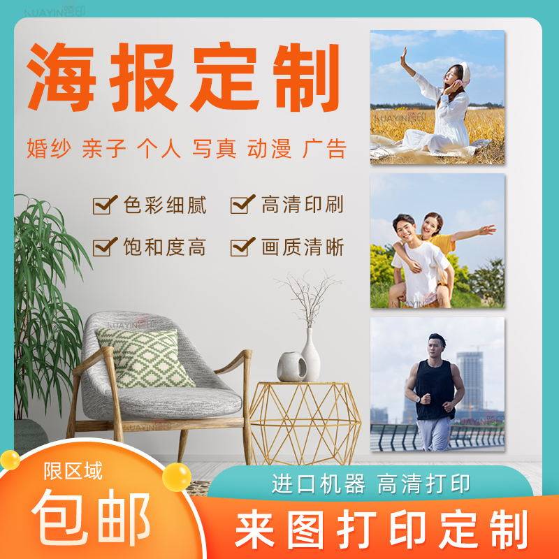 方形明星海报定制宿舍墙贴写真照片打印婚纱宝宝动漫美女广告贴纸 - 印偶海报定制企业店
