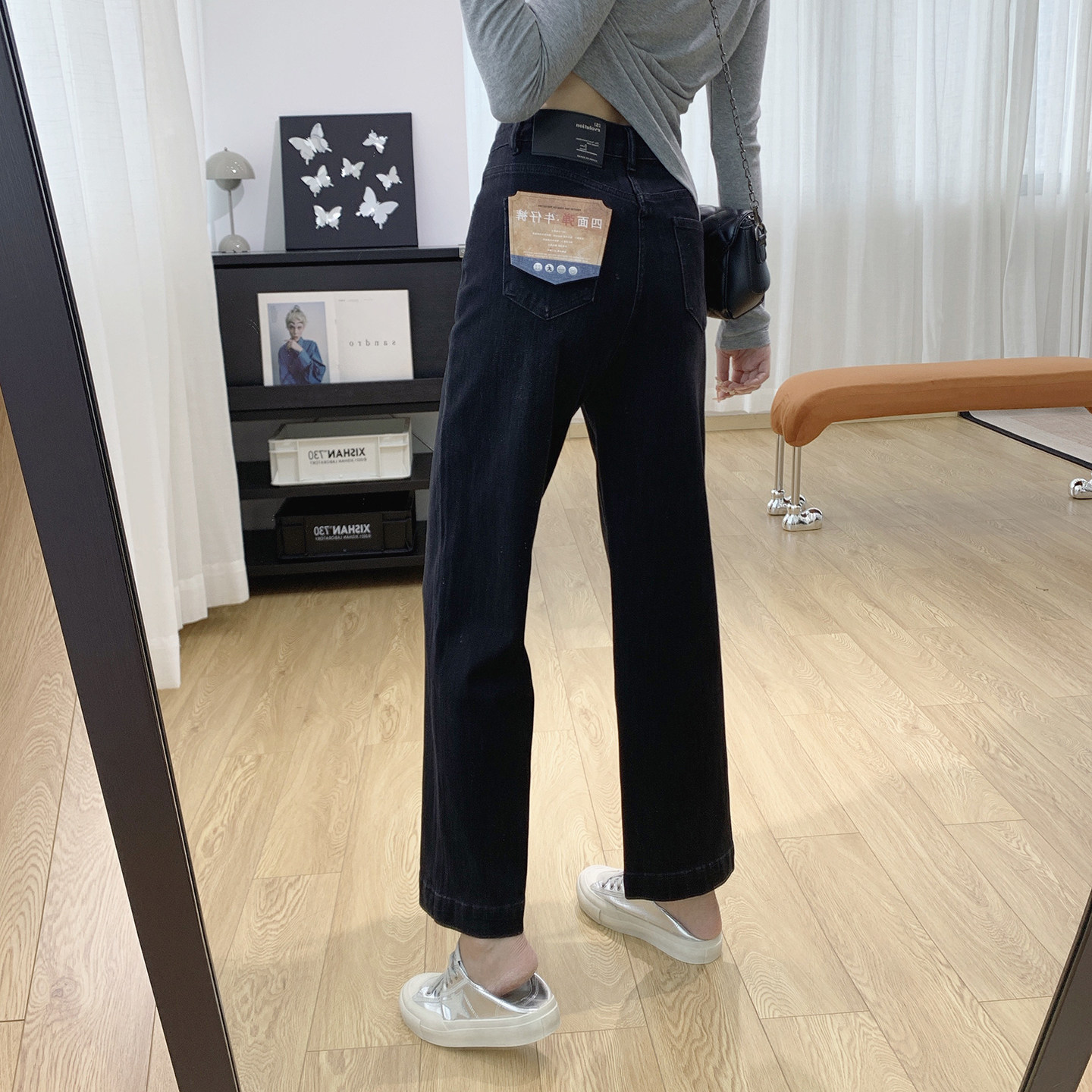 四面弹高腰显瘦法棍裤女春季宽松直筒加绒牛仔裤2026新款裤子春秋 - 公婆家