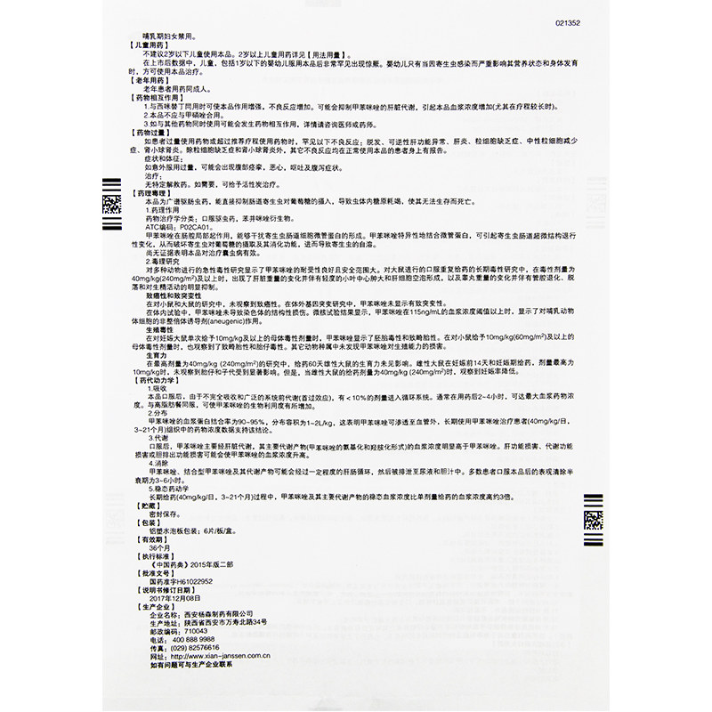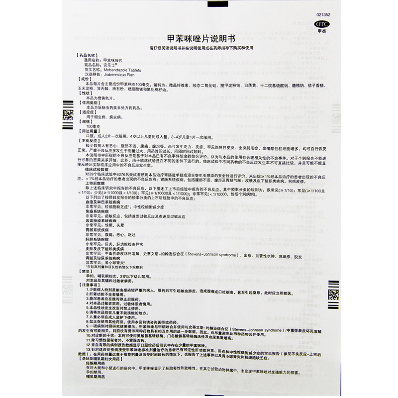 安乐士甲苯咪唑片0.1g*6片蛔虫蛲虫驱虫药人用打虫药甲苯咪挫锉片 - 国药大药房旗舰店