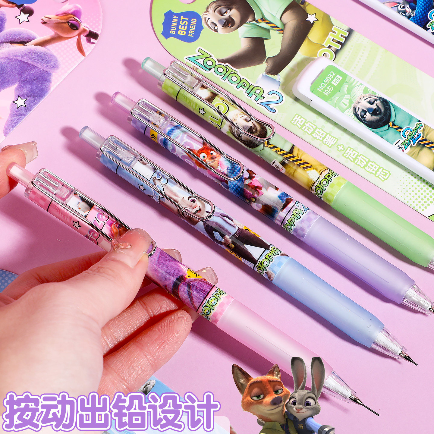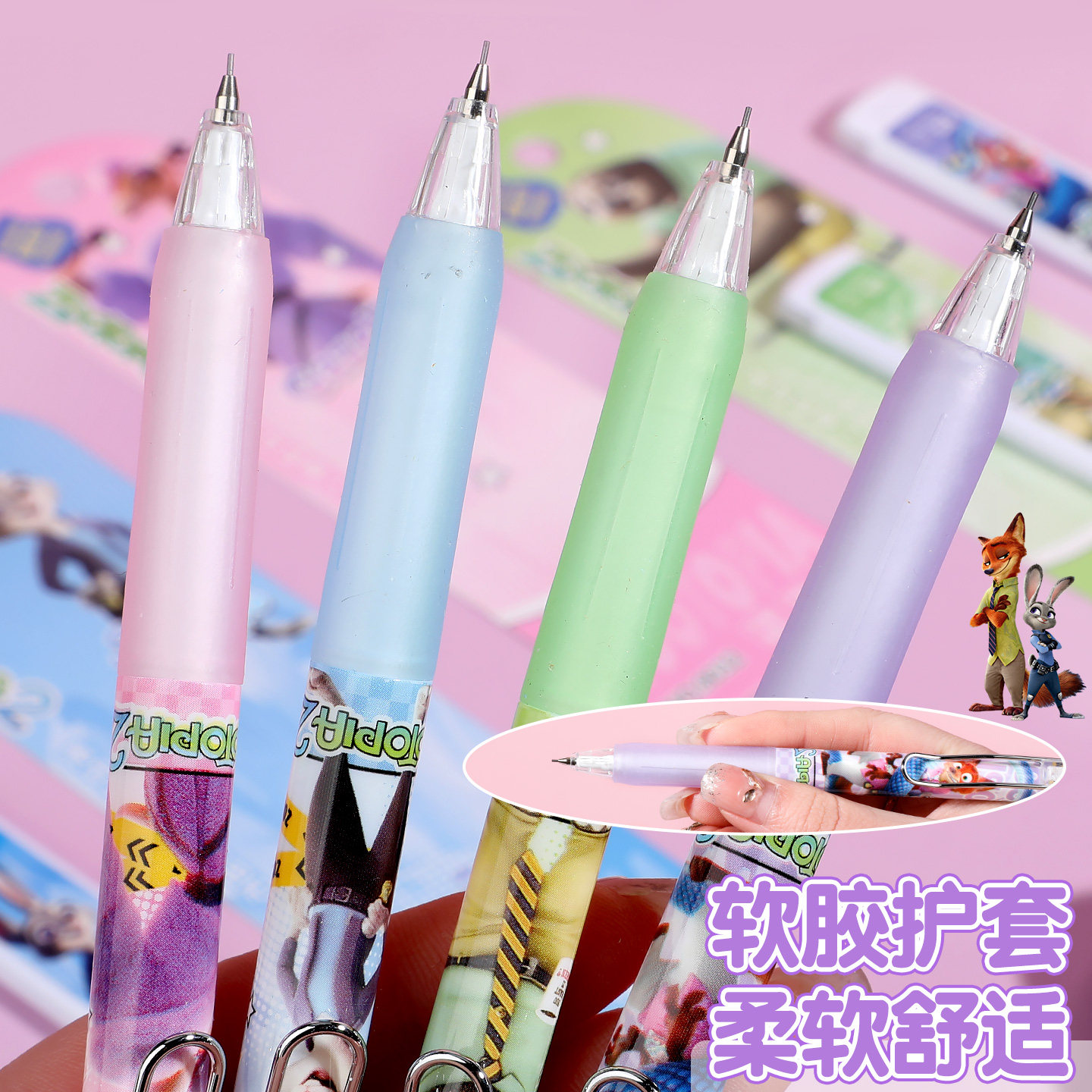 疯狂动物城自动铅笔套装0.5mm朱迪尼克夏奇羊软握按动铅笔不断铅 - 佳佳文具优选