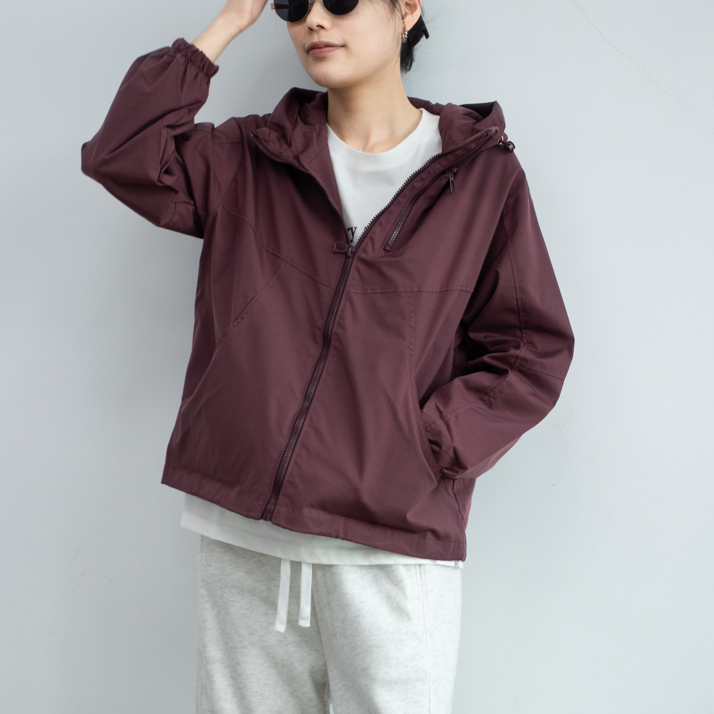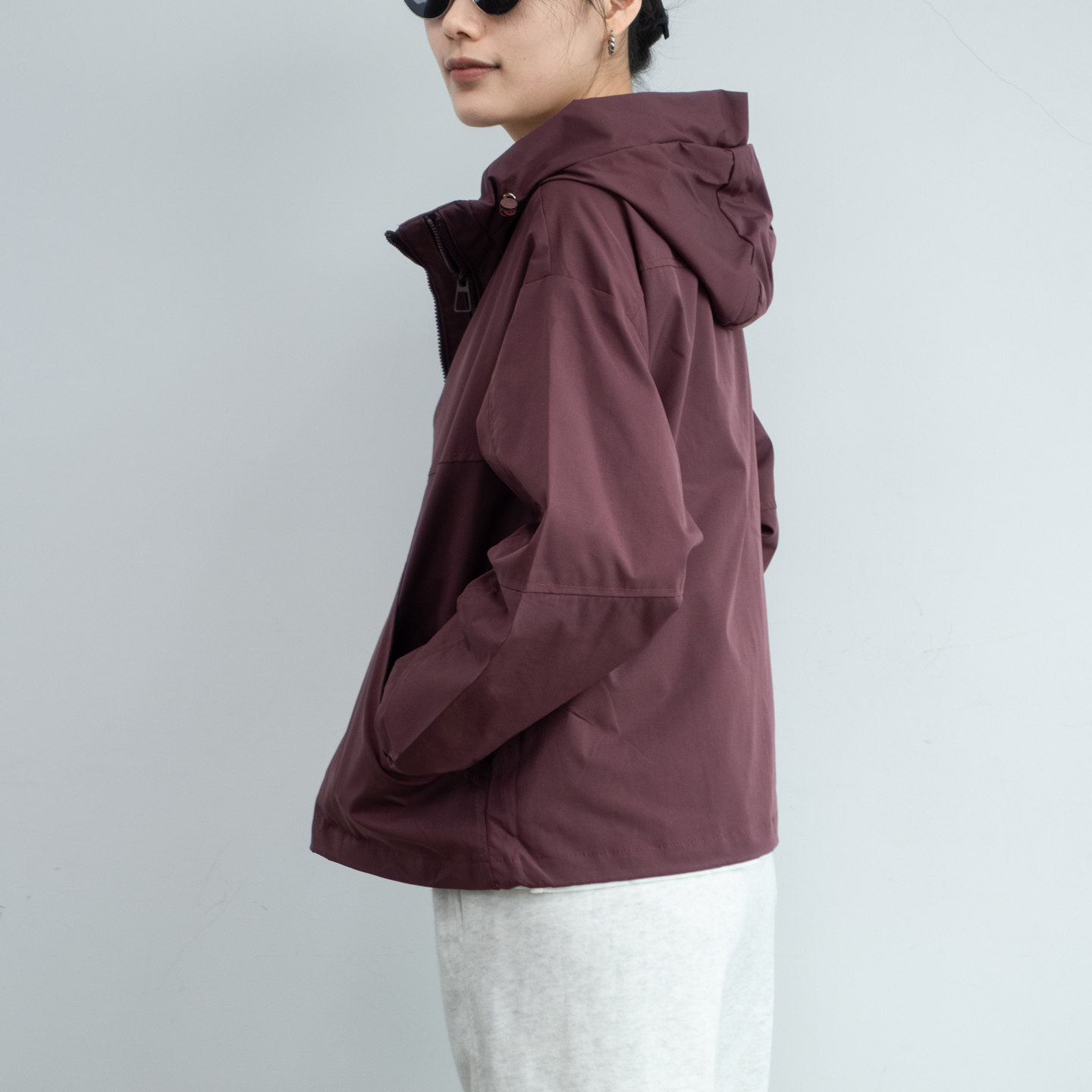 2025年秋冬新款简约绛紫色宽松显瘦女连帽冲锋衣外套女夹克上衣女 - 三米极简 优质女装专供