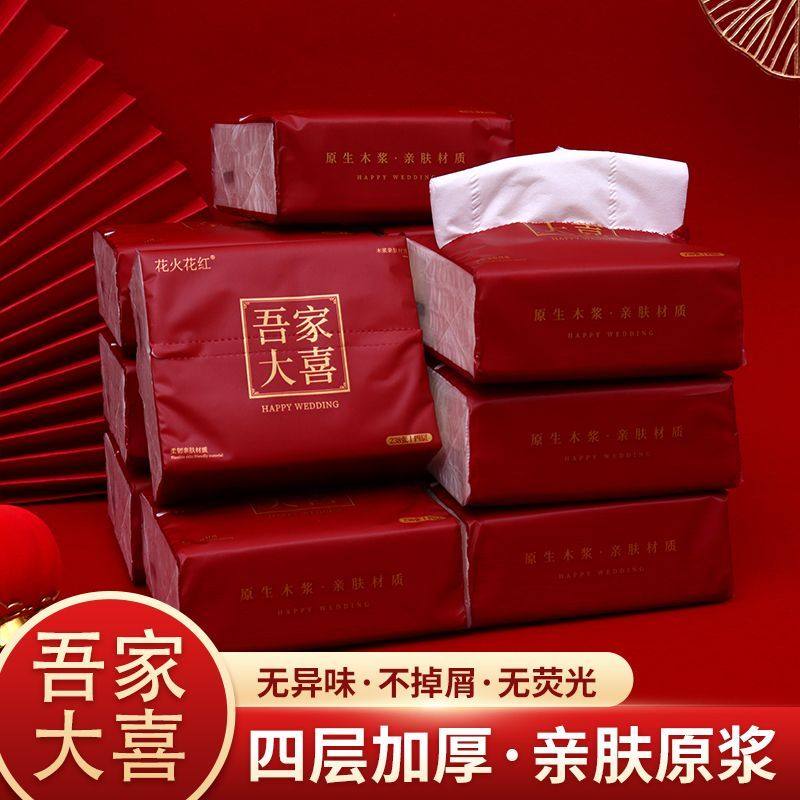 婚宴纸巾大包订婚餐巾纸抽喜字结婚红色小包抽纸婚庆用品大全 - 金源宫灯喜铺