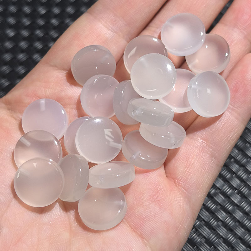 14mm白玛瑙圆片半孔吊坠圆形diy项链手链 裸石镶嵌配件 - 福根阁珠宝