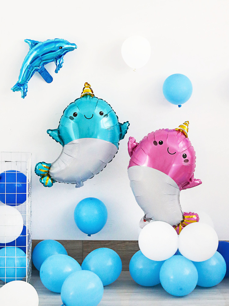 海洋动物主题生日气球装饰布置海豚鲸鱼海狮鳄鱼椰树卡通铝膜气球 - 飞天行喜铺