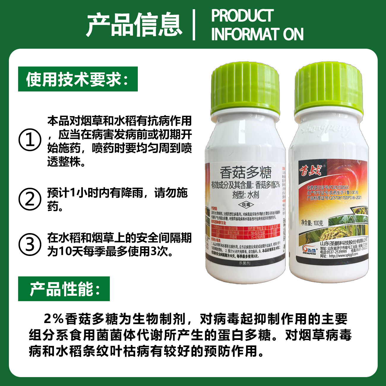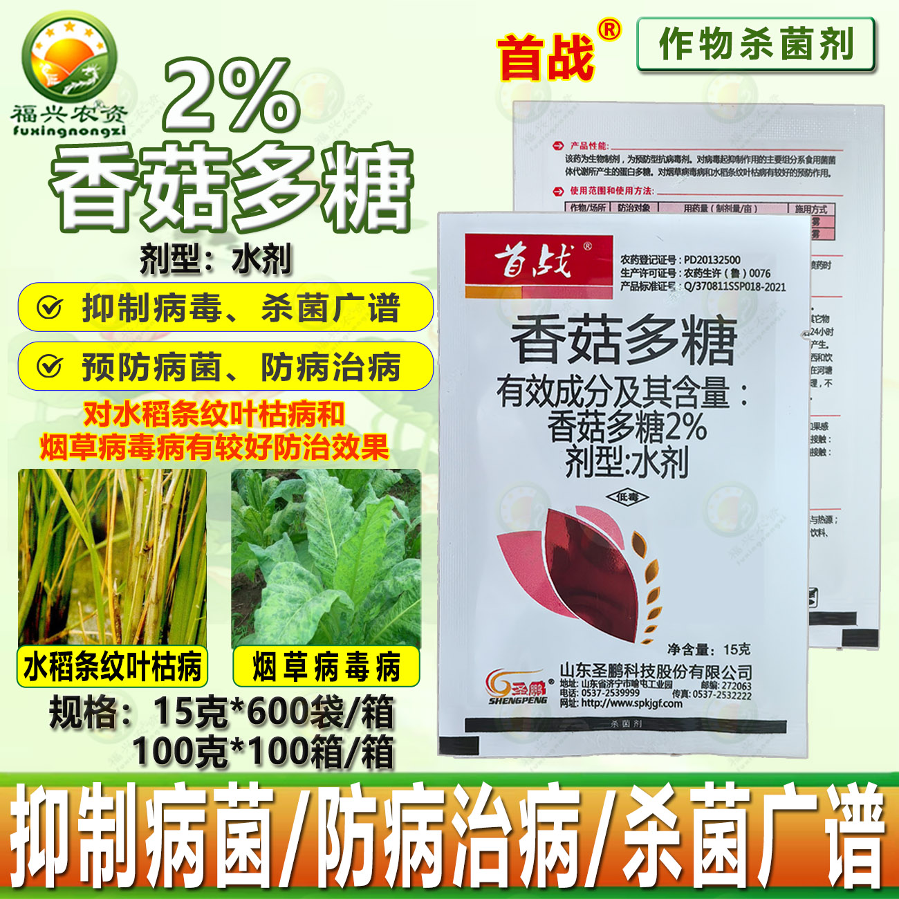圣鹏首战2%香菇多糖水剂烟草病毒病水稻条纹叶枯病生物农药杀菌剂 - 福兴农资企业店铺