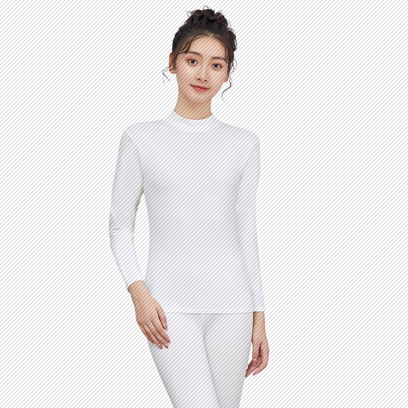 荣樱纯棉薄款保暖内衣女打底内搭中领大码内穿棉毛衫秋衣秋裤套装 - 舒利康服装店