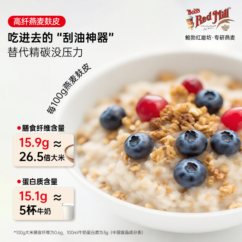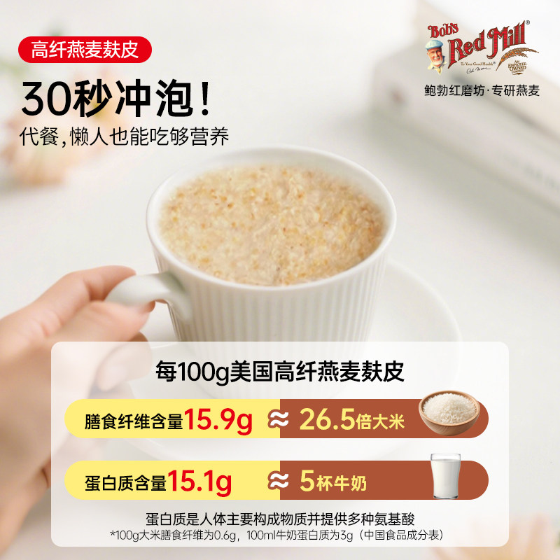 【临期8.1到期】鲍勃红磨坊进口高纤燕麦麸皮官方旗舰店正品早餐
