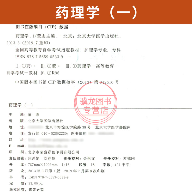 自学考试教材02903护理学专科真题试卷2903药理学一董志北京大学医学版2025年成人自考成考成教中专升大专高升专复习资料 - 骥龙图书专营店
