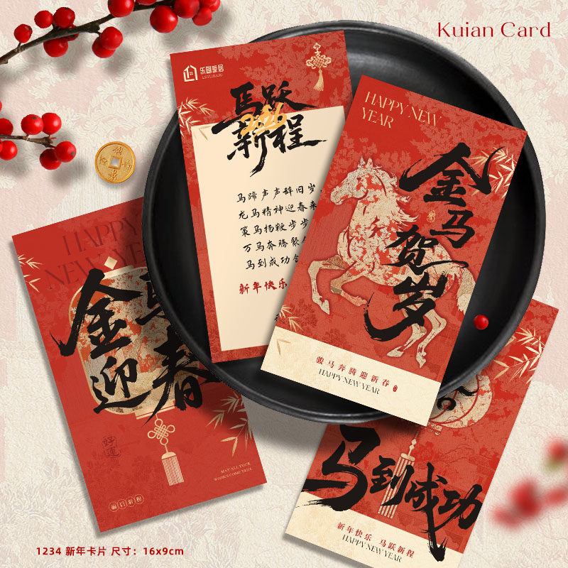 您的位置:恰鹿券集市  >  文体  >  2026新年贺卡定制中国风马到成功祝福卡春节元旦明信片设计印刷