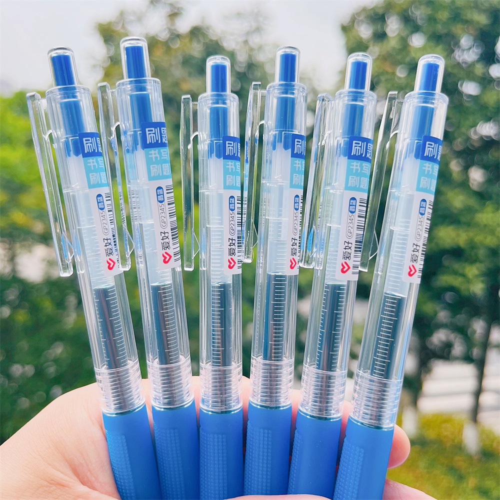爱好晶蓝色中性笔按动速干蓝笔学生刷题笔黑色蓝色红色ST头0.5mm - 薇罗卡梦文具专营店