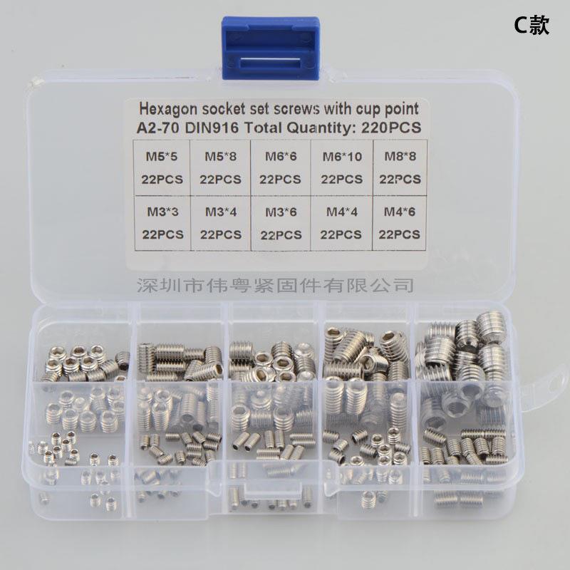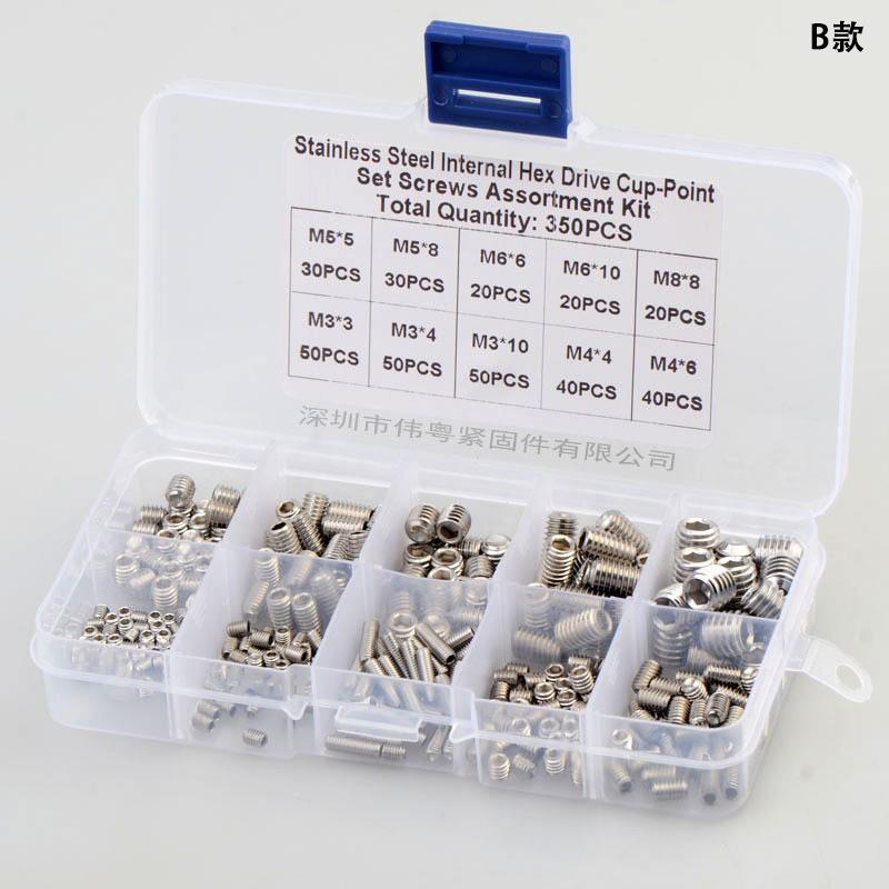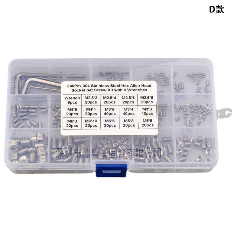 200/350/220/340pcs不锈钢DIN916内六角无头紧定机米螺丝套装 - 固德精选工厂店
