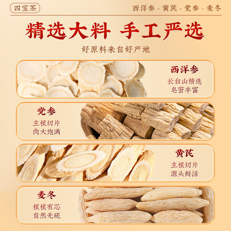 元气四宝茶麦冬黄芪党参西洋参生气女血养补正品旗舰店