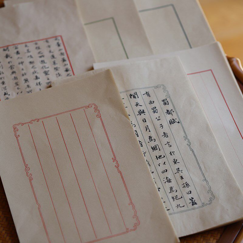 同和纸庄元书纸书法信笺纸空框传统红八行六行信札手札小楷书信纸