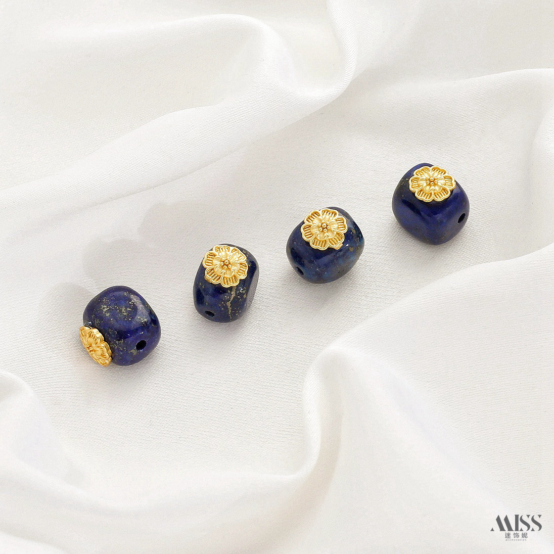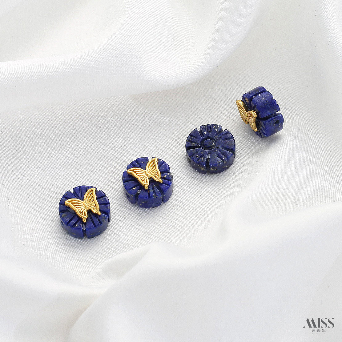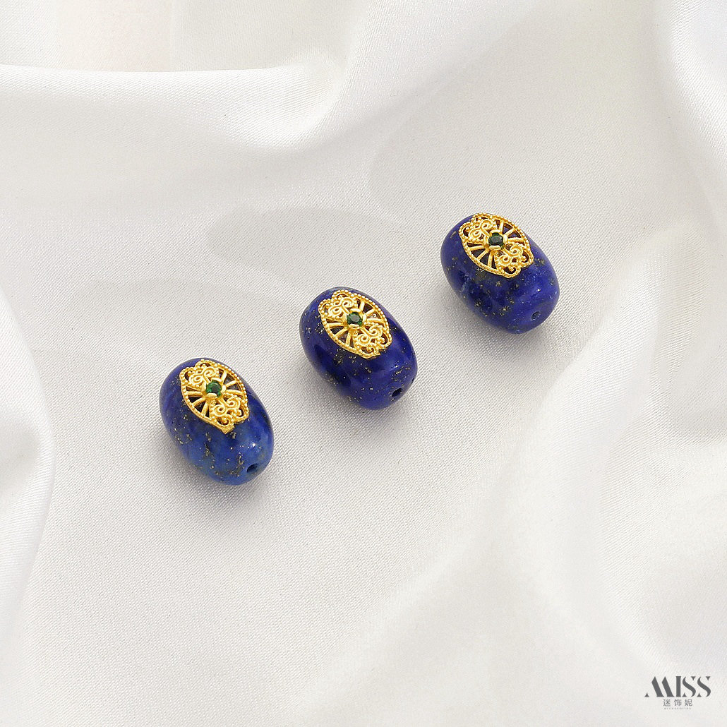 天然青金石屁桃爱心花朵蝴蝶隔珠枣珠吊球滴溜手牌diy首饰品配件 - 迷饰妮手作饰品配件批发