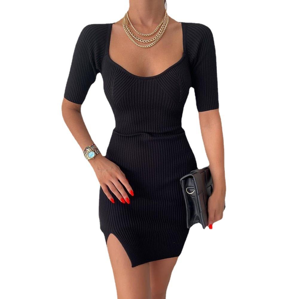 Womens dress sexy slim short sleeve round neck knitted - Romantic nightclub