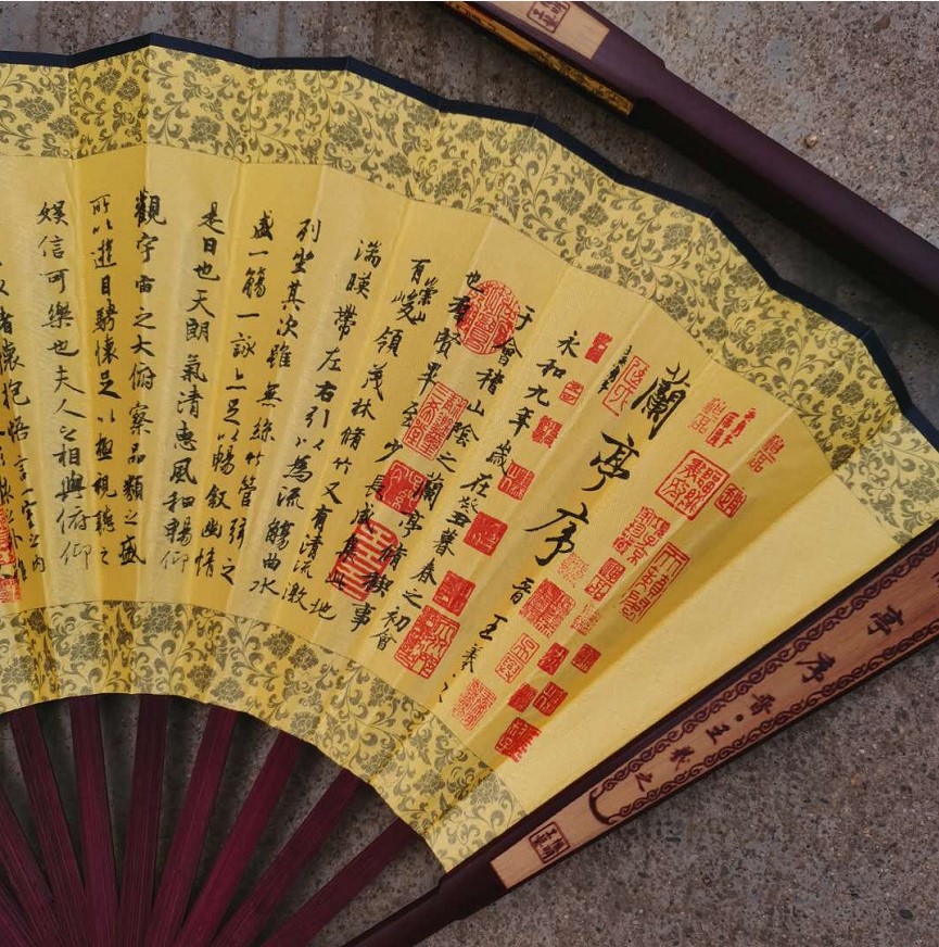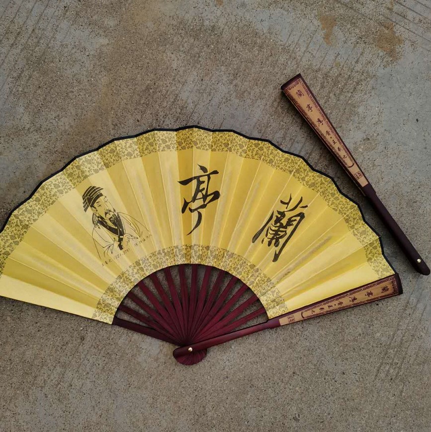 10寸扇子折扇王羲之兰亭序扇骨雕刻绢扇中国特色旅游纪念礼品 - 苏航之家
