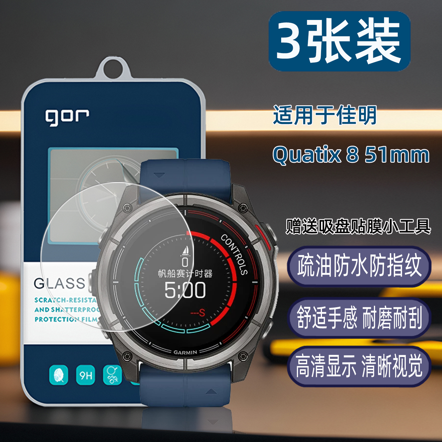 GOR适用佳明Quatix酷耐时8手表飞耐时Fenix盘7屏X防8指6纹爆epix荧pro屏幕高51清47mm透明钢化玻璃保护硬贴膜 - GOR品牌数码店