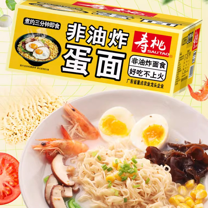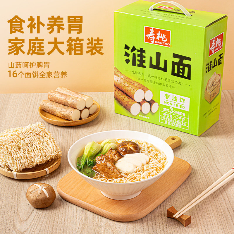 寿桃1.2kg非油炸蛋面淮山面早餐面整箱速食方便面汤面挂面 - 小食汇