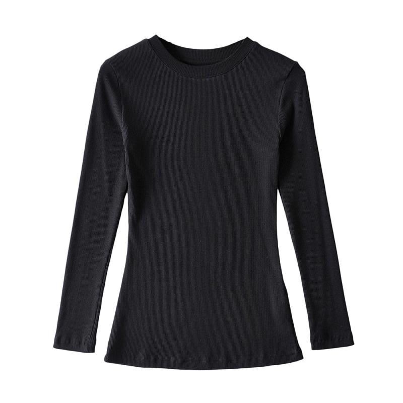长袖小圆领基础款常规女T恤螺纹拼接领口欧美打底衫弹力修身上衣 - girls欧美潮流女装修身T恤吊带背心卫衣
