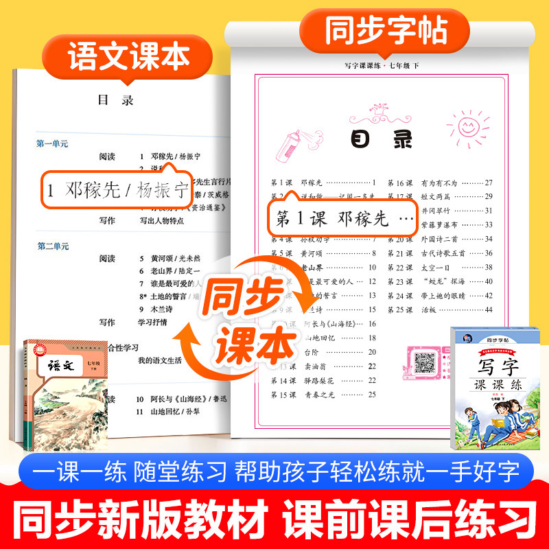 您的位置:恰鹿券集市  >  文体  >  2026新版 七年级下册语文字帖配套新教材 初一同步练字帖部编版人教版下 写字练字钢笔描红练习 7年级课课练每日一练写字帖