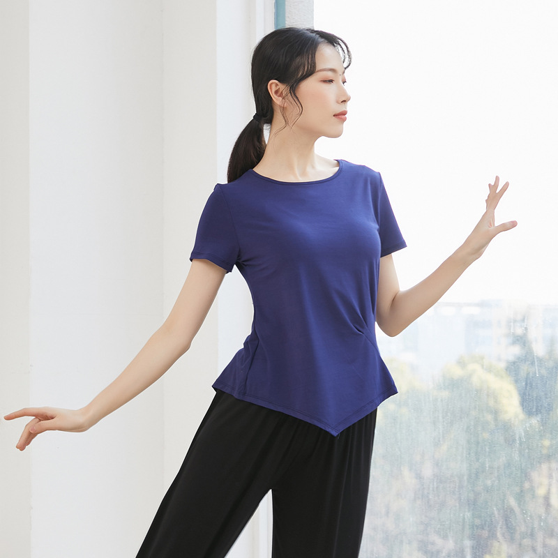 遮肚短袖练功服女春夏新款舞蹈服装上衣宽松形体训练服装跳舞衣服 - DQ舞蹈