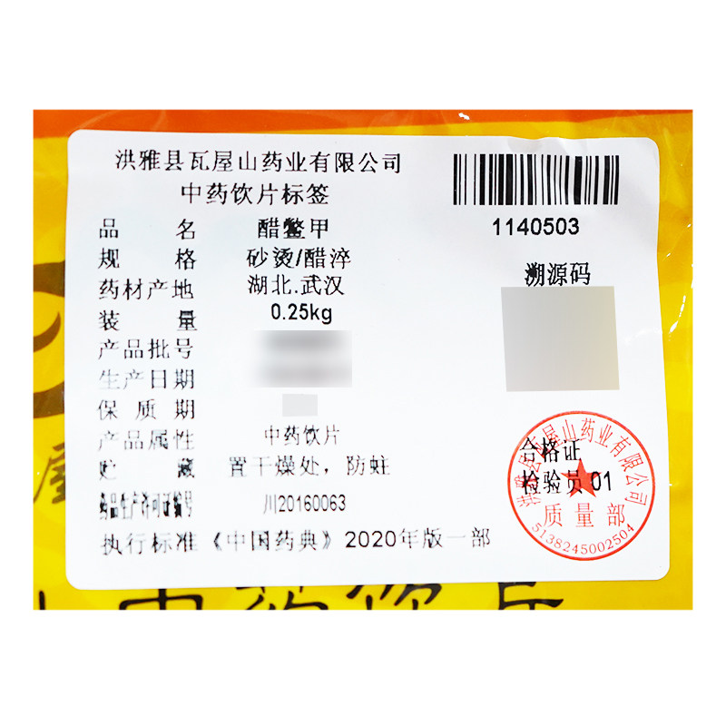 瓦屋山药业中药饮片 醋鳖甲 砂烫醋淬 中药材抓配 中药材店铺大全