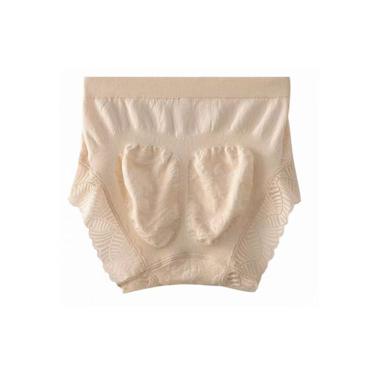 柔软舒适无痕 无缝一体女士提花内裤桑蚕丝底裆中腰高弹三角短裤