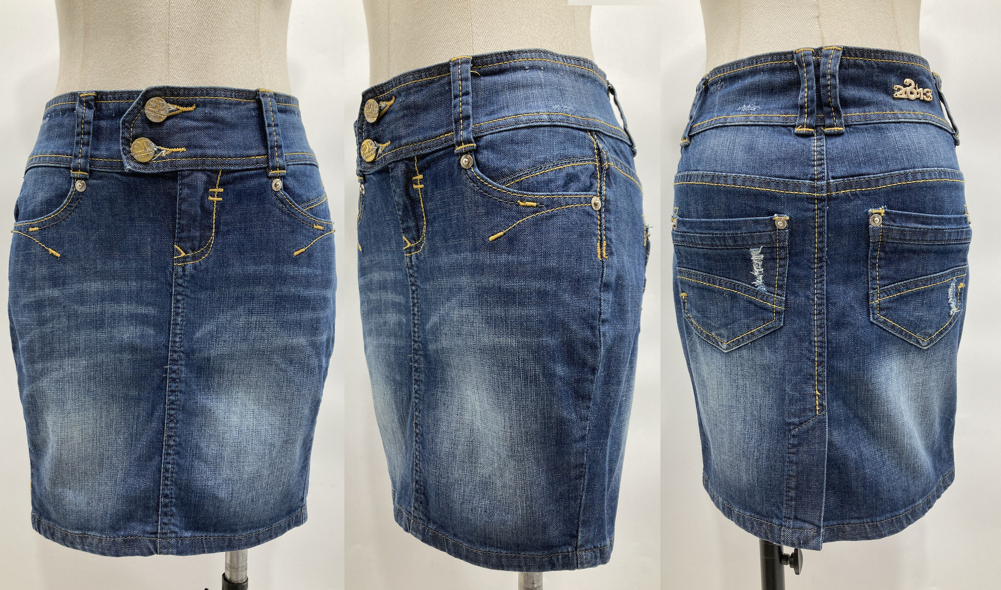 瑕疵特价|美式复古街头涩谷辣妹低腰洗水做旧棉弹牛仔包臀半身裙 - 西子瓦 She's warm