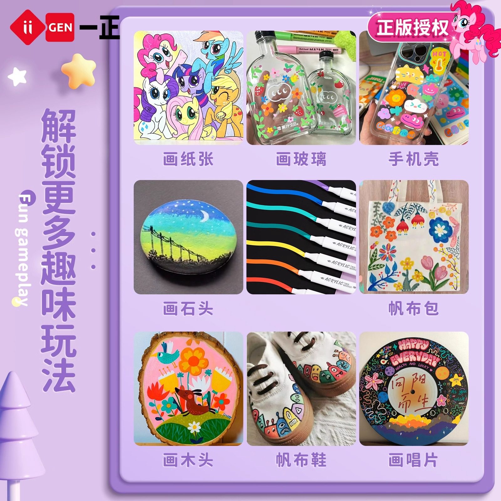 一正小马宝莉丙烯马克笔儿童水彩笔小学生美术画画幼儿园双头画笔 - 德国品牌文具店