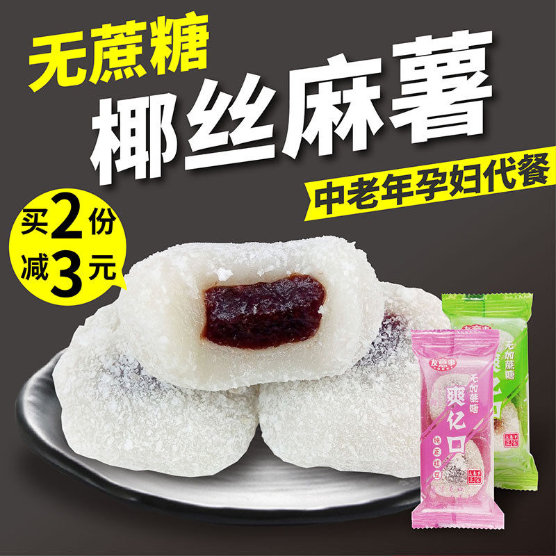 糖尿人专用无糖精食品 椰丝麻薯豆沙蓝梅味 肉松糯米糍中老年零食